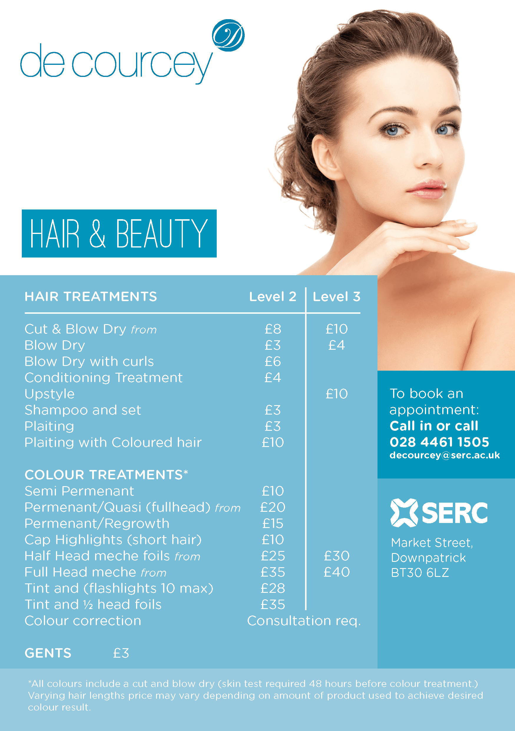 De Courcey is a student operated service, providing them with valuable experience and offering you high street services at great prices. Students are supervised by experienced lecturers with wide ranging industry know-how.