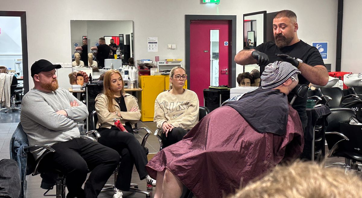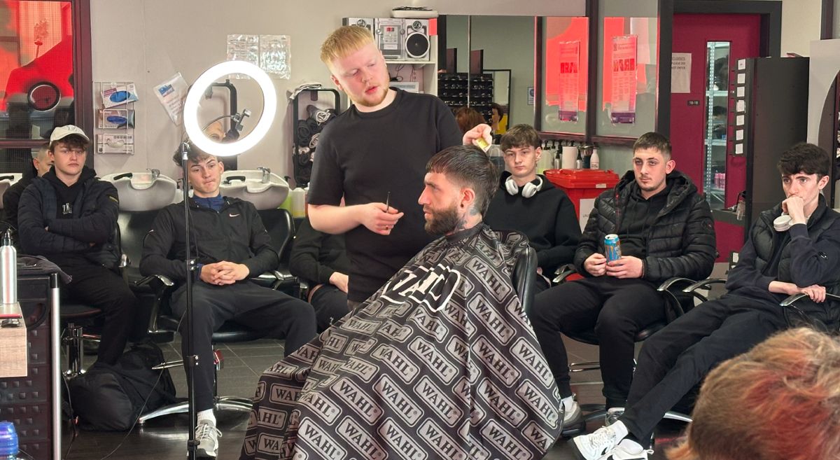 Charlie Smyth, who has recently started working at the newly opened Prestige Barber Shop in Lisburn, gave a demonstration on how to perform a burst fade hairstyle, while giving students advice on modern haircut techniques.