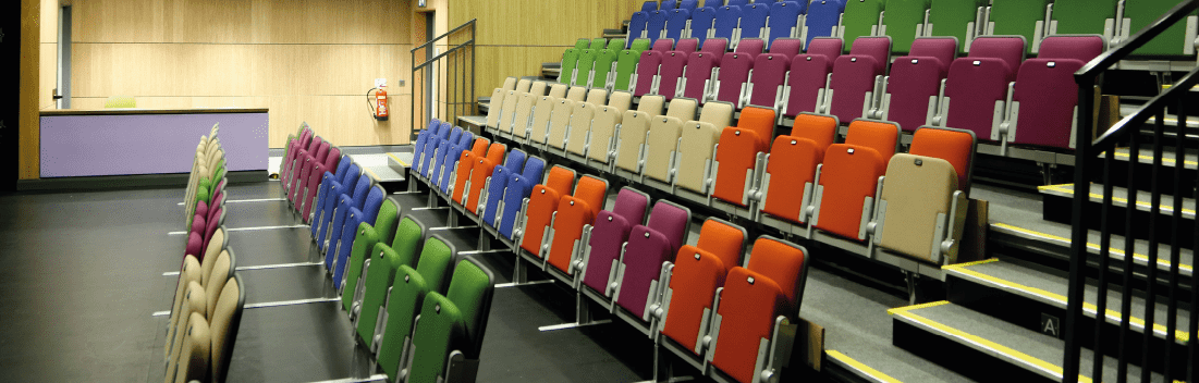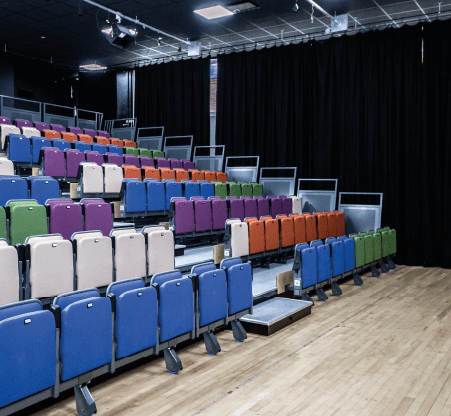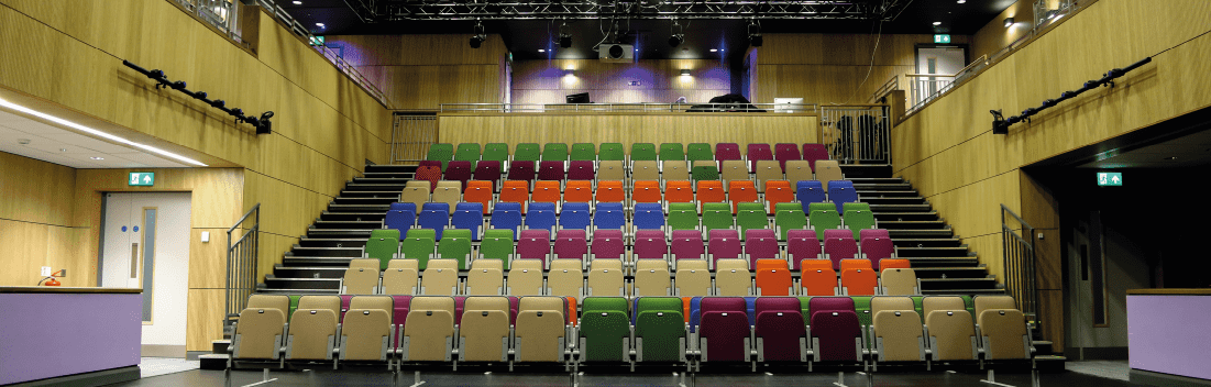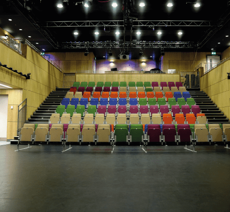 Our main auditorium is a modern theatre space for a show-stopping seated or standing event. Seating is tiered and retractable, allowing total flexibility in set up styles to suit different events. The theatre is fully equipped with the latest technology in sound and lighting. Our expert in-house technical team can create a desired atmosphere for your event. Dressing rooms and back-stage area offer extra space for your speakers and performers. Perfect for concerts and live performances.