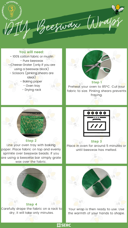 Natural beeswax wraps are a great alternative, they are plastic free, fully compostable and fun to make! They are made from natural cotton sheets and covered with a wax coating. They mould across the top of your containers and food items using the heat from your hands. The great thing about beeswax wraps is they can be used again and again – when looked after correctly they can last for around 10 years! Not to mention they are also so much prettier than cling film and plastic sandwich bags.