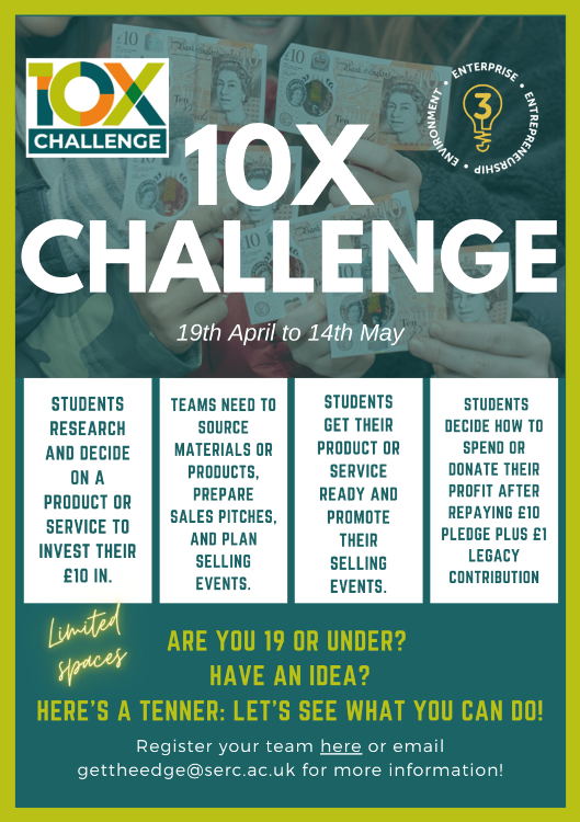 The 10X Challenge gives young people, up to age 19, a £10 investment and 4 WEEKS to see what products or services they can sell to give them first-hand experience of what it’s like to be an entrepreneur. You will also be able to enter competitions throughout the challenge and win prizes! Check out this video to see what it's all about!