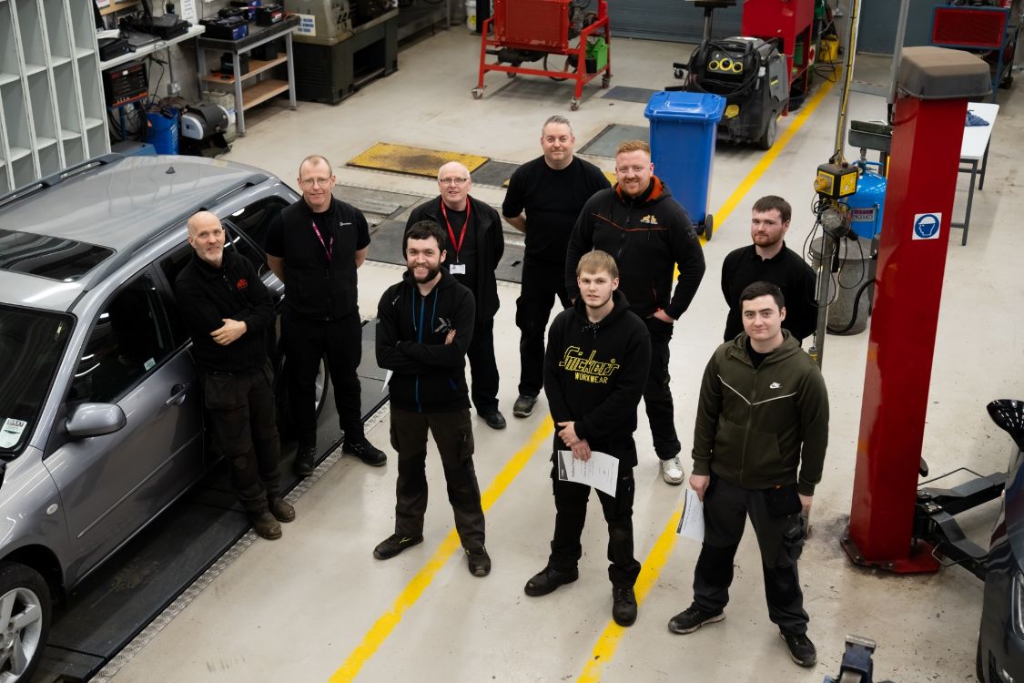 The apprentices are currently completing the Level 3 Apprenticeship NI in Vehicle Maintenance & Repair (Light Vehicle) and employed in industry four days per week.
