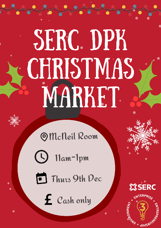 The Markets will feature a vast array of products including clothing, jewellery, skincare products, pin badges, origami bookmarks, wall prints, Christmas cakes, and of course, Christmas decorations plus much more.
