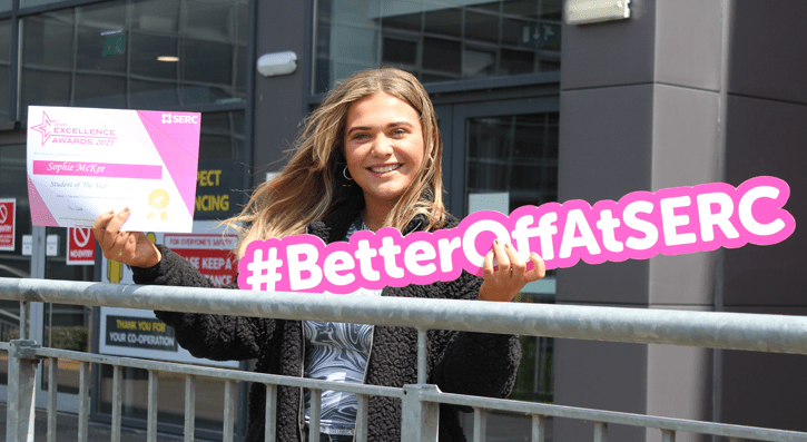 Sophie McKee, from Ballynahinch, Student of the Year Level 3 National Extended Diploma in Applied Science said, “It’s great to finish off the year and my course with an Excellence Award. I would have no hesitation in recommending SERC for Applied Science, the tutors are brilliant, and offered great support in College and when we were working online. The Applied Science course opens so many different opportunities. I have received a few offers from different universities to study Podiatry - Ulster University is my first choice, so all being well come results day, I will be studying there.”