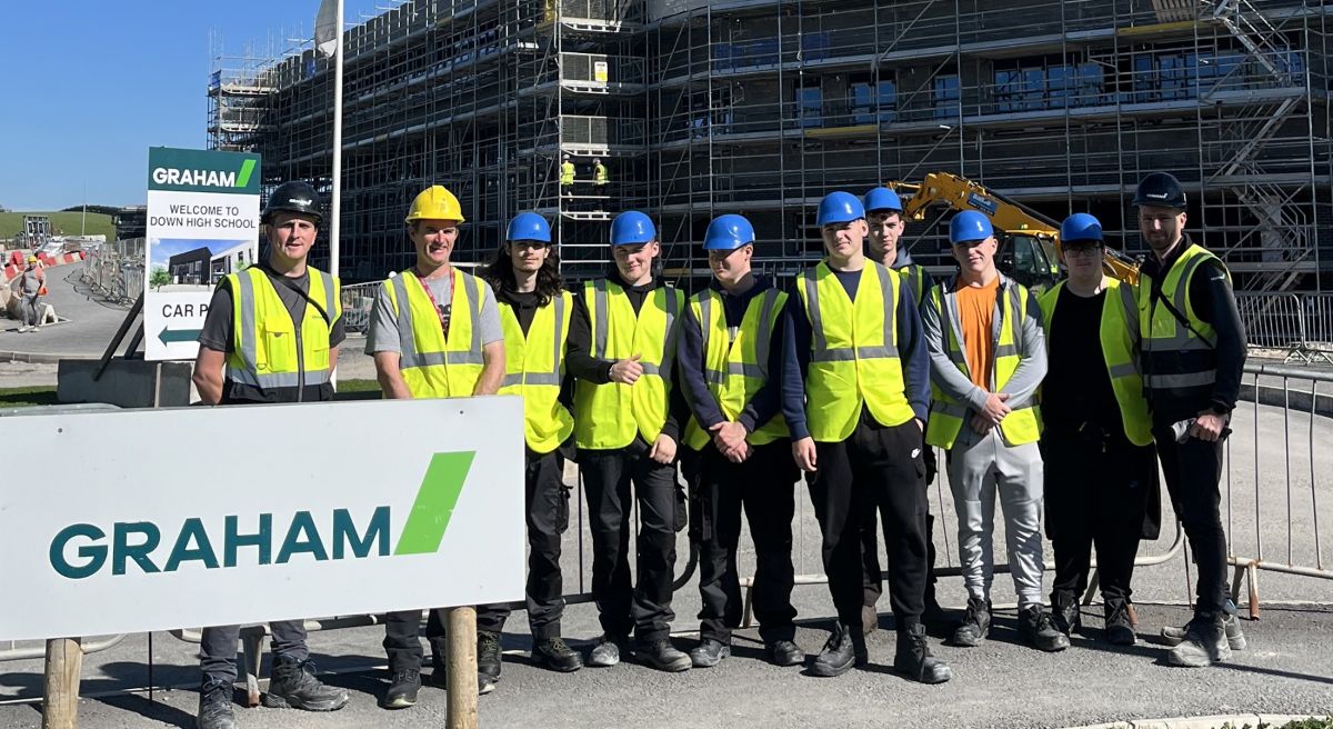Accompanied by SERC’s Skills Development Champion, Brendan Moore, the students were welcomed to the site by Project Manager, Gareth Brown and the Site Manager, Patrick McBride from Graham.