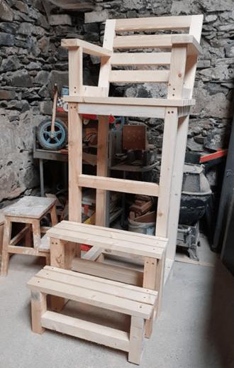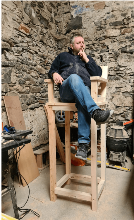 "The skids are simply a softwood, but they measure a useful 65mmx 65mm x 12mm long. Initially I chopped them up in to logs for the stove, to keep us warm over the winter. I decided to make a storage unit out of the skids to hold the firewood and keep it tidy, and that’s when I realised that was more useful for furniture or other projects. So, I sketched out the new project designated 'Chairzilla'. It needed to be strong, it needed to be tall, but most of all it needed to be funny."