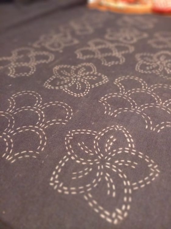 Sashiko or more properly sash(i)ko as the ‘i’ is barely pronounced, is the term for Japanese embroidery where intricate, typically geometric, designs are made using running stitch, commonly using white stitches on indigo fabric. The contrast between the blue and white works well although other colours are also used. The white stitches on a dark background are meant to represent snow on the ground in the dark, cold months of winter when sashiko stitching was the main indoor activity for Japanese women in rural northern Japan.