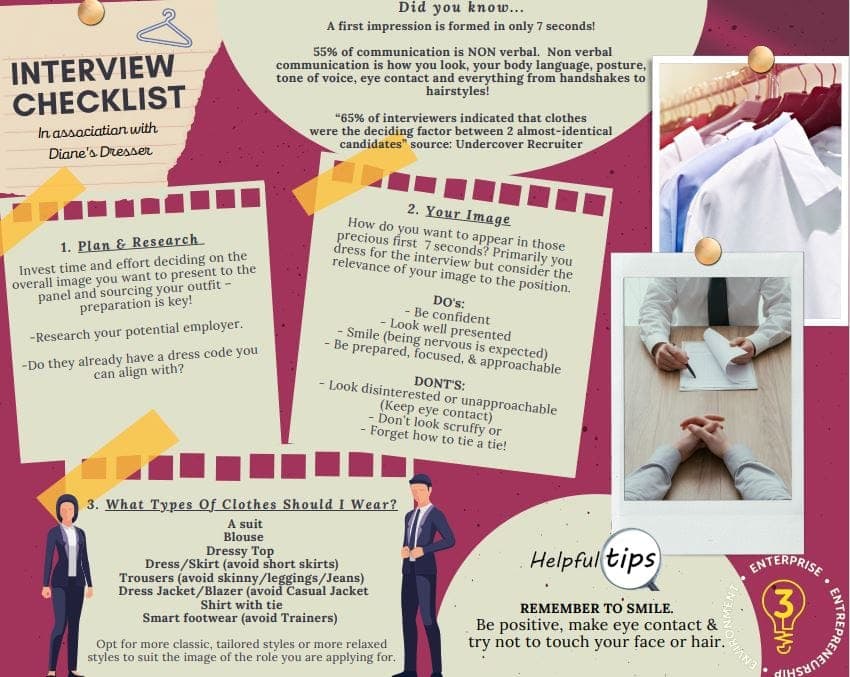 Check out Diane’s Interview Checklist and Sustainable Styling video to get great tips on what to wear for an interview and about more sustainable fashion choices in general.