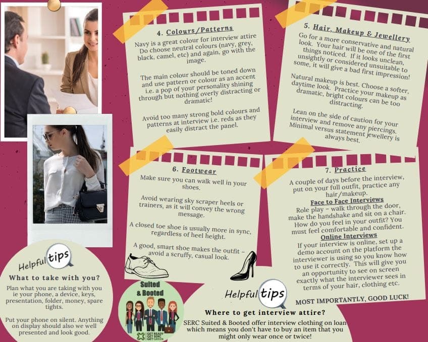 Don’t forget Suited & Booted at SERC offer a wide range of clothing suitable for interviews. Help us reduce the amount of clothing going to landfill and opt to choose an outfit from Suited & Booted instead of buying a new one! Simply contact the Suited & Booted champion at your local campus to book in to browse the eco-conscious collection.