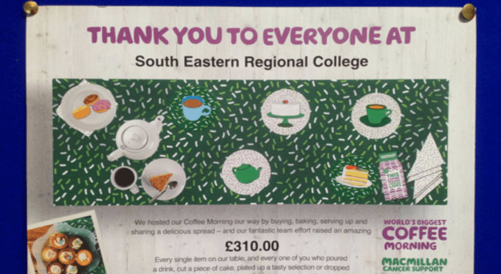 SERC's Downpatrick campus have recently taken part in Macmillan’s World’s Biggest Coffee Morning to raise money for Macmillan Cancer Support.