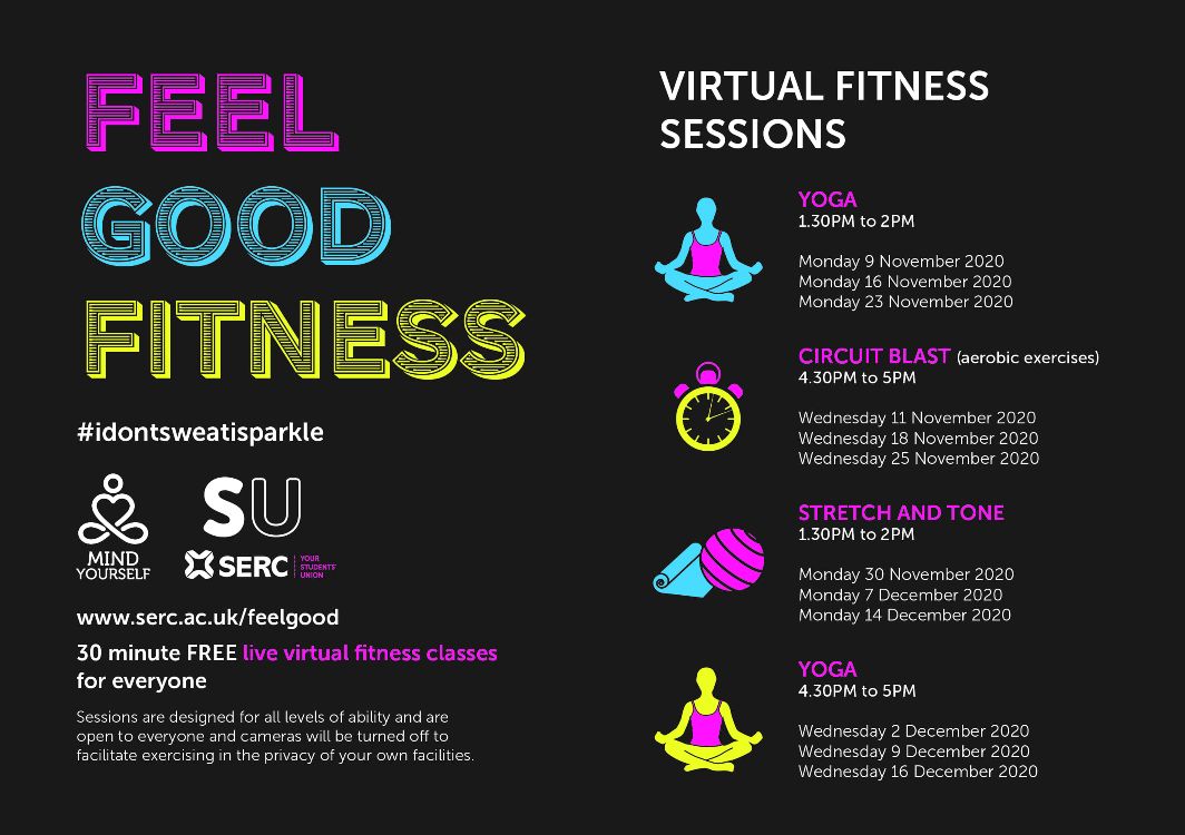Feel Good Fitness is a new and exciting wellbeing initiative delivered in partnership with Mind Yourself and the Students’ Union at SERC. On Monday 9th Nov, we hosted the first of our “LIVE” Feel Good Fitness sessions with lunchtime Yoga. Staff across all SERC Campuses took part along with a class of students in the Bangor Campus who did the LIVE session as part of their physical activity element of the Duke of Edinburgh award, supporting both their learning and wellbeing.