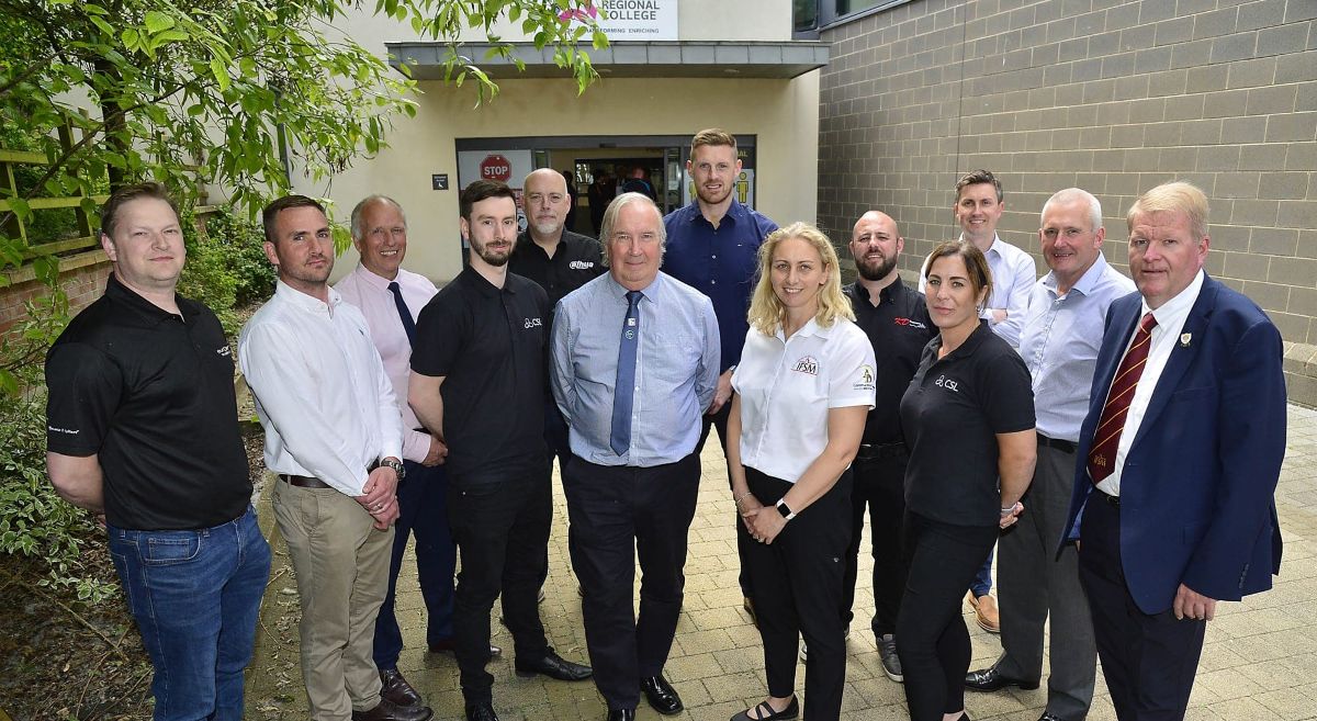 Caption main picture above: SERC hosted a Fire Security Careers Day to raise awareness of the opportunities for qualifications and careers in the fire and security industry for school leavers or those thinking about a change of direction. The event also recognised the first cohort of Level 3 Fire Systems Apprentices which had been postponed due to the global pandemic. The Apprentices are pictured with their employers, SERC lecturers and Trevor Jenks (centre, blue shirt) from the Security Systems and Alarms Inspection Board.