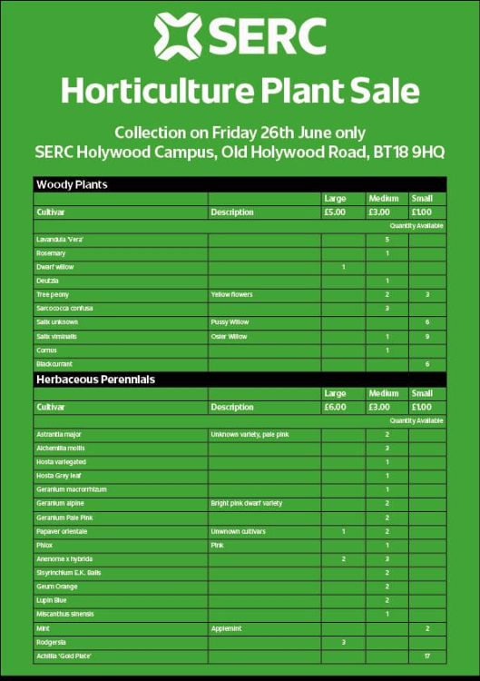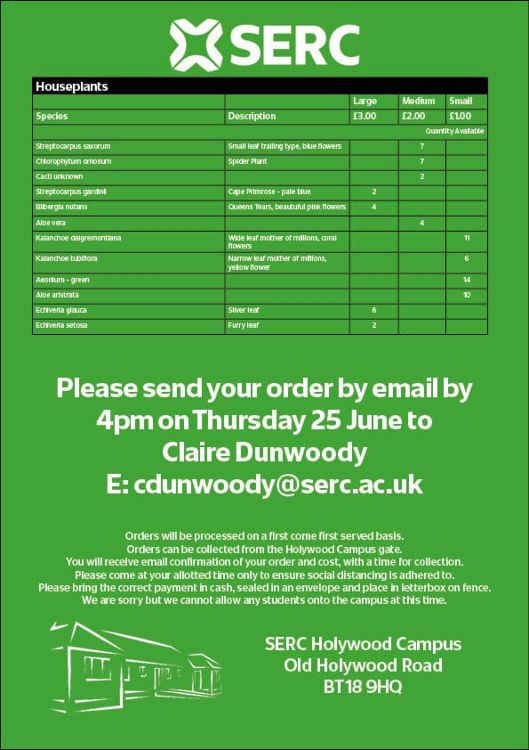 SERC’s Horticulture team and student’s annual plant sale in Holywood has been a fixture in the gardeners’ calendar for many years. This year, the team have adjusted the usual occasion, considering social distancing and staying safe, so everyone can pick up a plant – but you have got to be quick!
