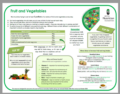 Fruit and Vegetable video – get a brief overview of The Fruit and Vegetables Eatwell Guide group, watch this video click here
