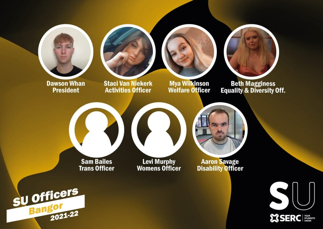 Dawson is one of seven Students’ Union officers from our Bangor Campus, our other elected Bangor officers are: