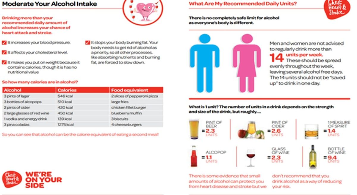 The Focus on Alcohol leaflet is a useful resource and is a guide to drinking and health to access click here