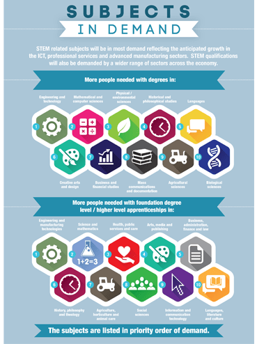 The Skills Barometer also acts as a driver for the further development of careers education, information, advice and guidance. It provides students and their parents with information on the current and future labour market opportunities, as well as employment prospects by level of education and by course.