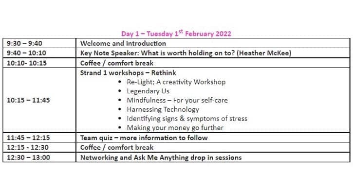 Similar to last year, there will be wellbeing activities throughout the day as well as a variety of online workshops. We hope you find the day useful and informative.