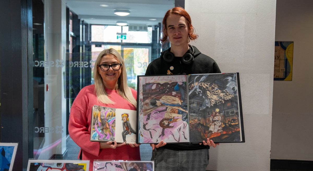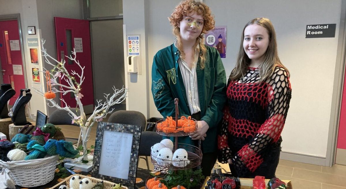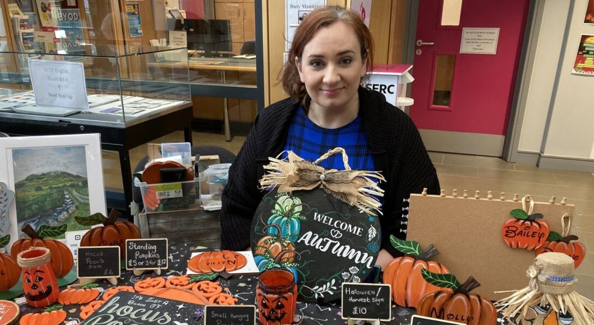 The event brought together staff and students from various course areas, such as Art & Design, Vehicle Maintenance & Repair, and Skills for Life & Work, to sell many tricks and treats, including candles, room sprays, art, stickers, photo prints, crochet items, keychains, ceramics, upcycled crafts and cloths, textiles, hair braiding, and much more.