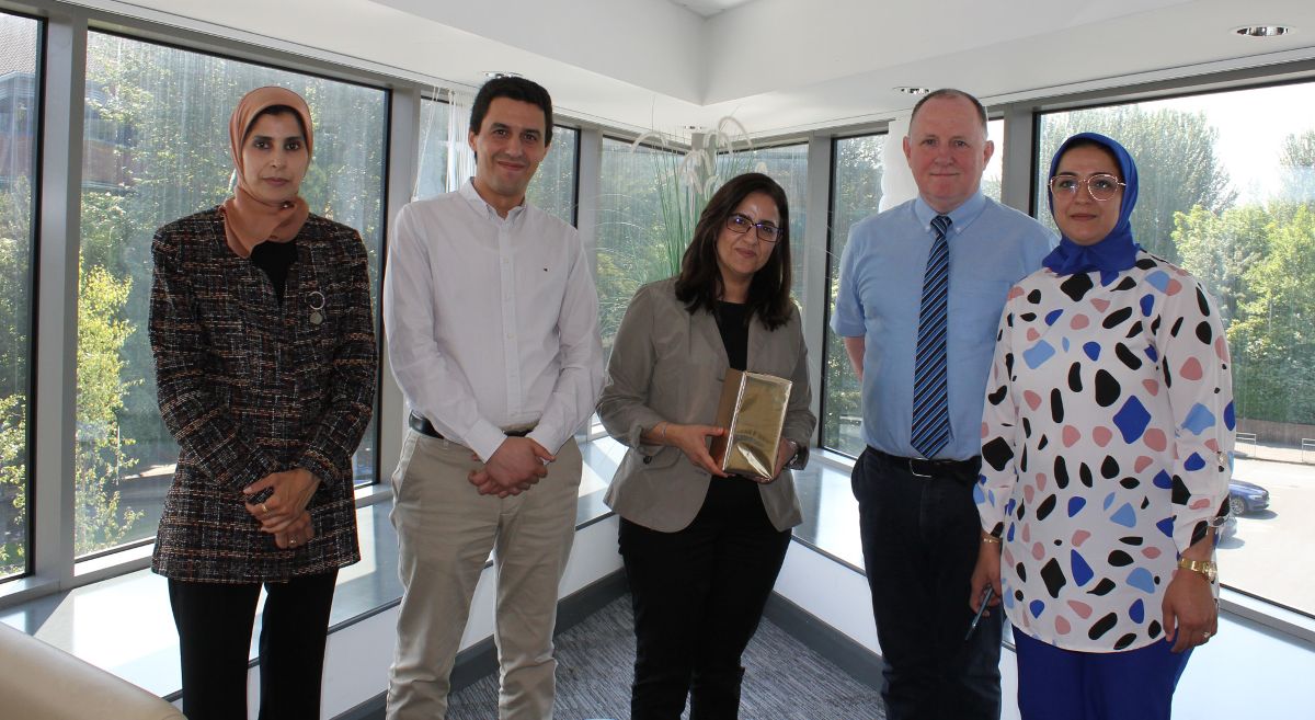 Photo 1 Moroccan visitors from the Office of Vocational Training & Employment Promotion are presented with a gift from SERC: (L – R) Rachida Idamia, Simohamed Semmaa, Souad Ellouzi, John Nugent, Chair Board of Governors, SERC and Siham Jaber.