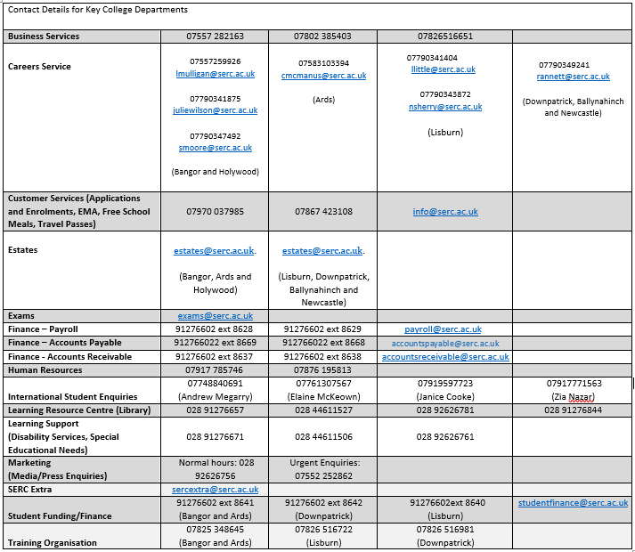 She added, “It is important for all students and parents to remember that although our buildings may be closed, learning and support from staff continues online so that each and every student can continue working to attain what they set out to achieve with SERC. We are working to resolve any issues, both envisaged and unforeseen as they arise, in the coming weeks as the situation develops and we receive further guidance from the authorities.”
