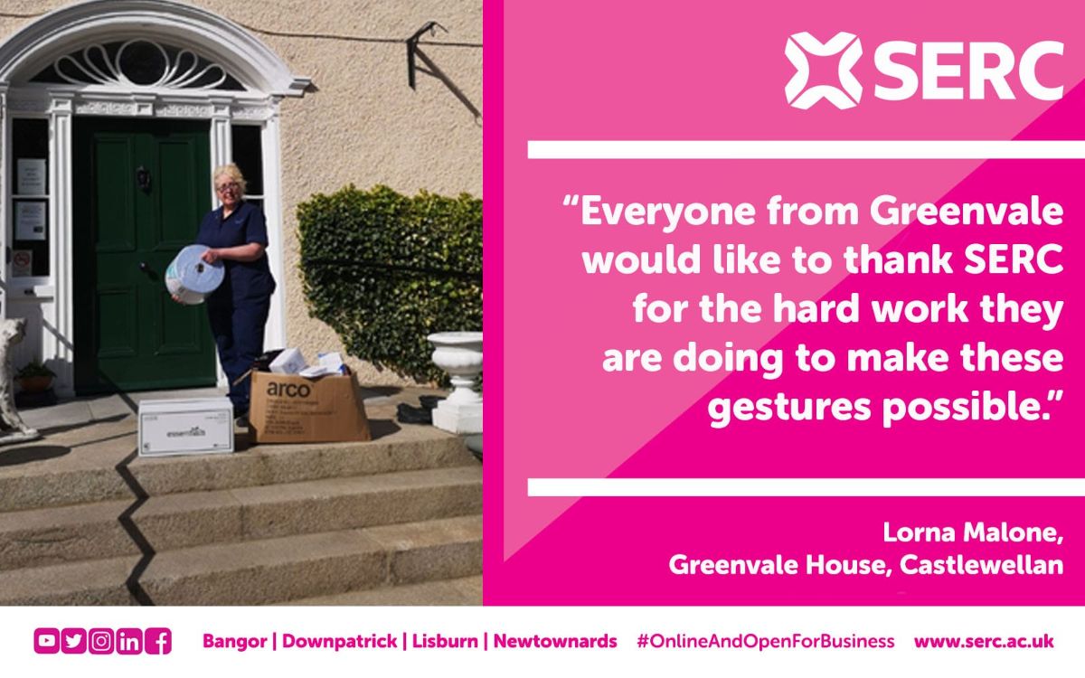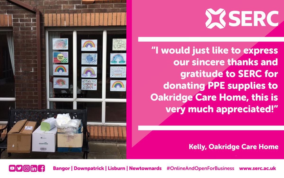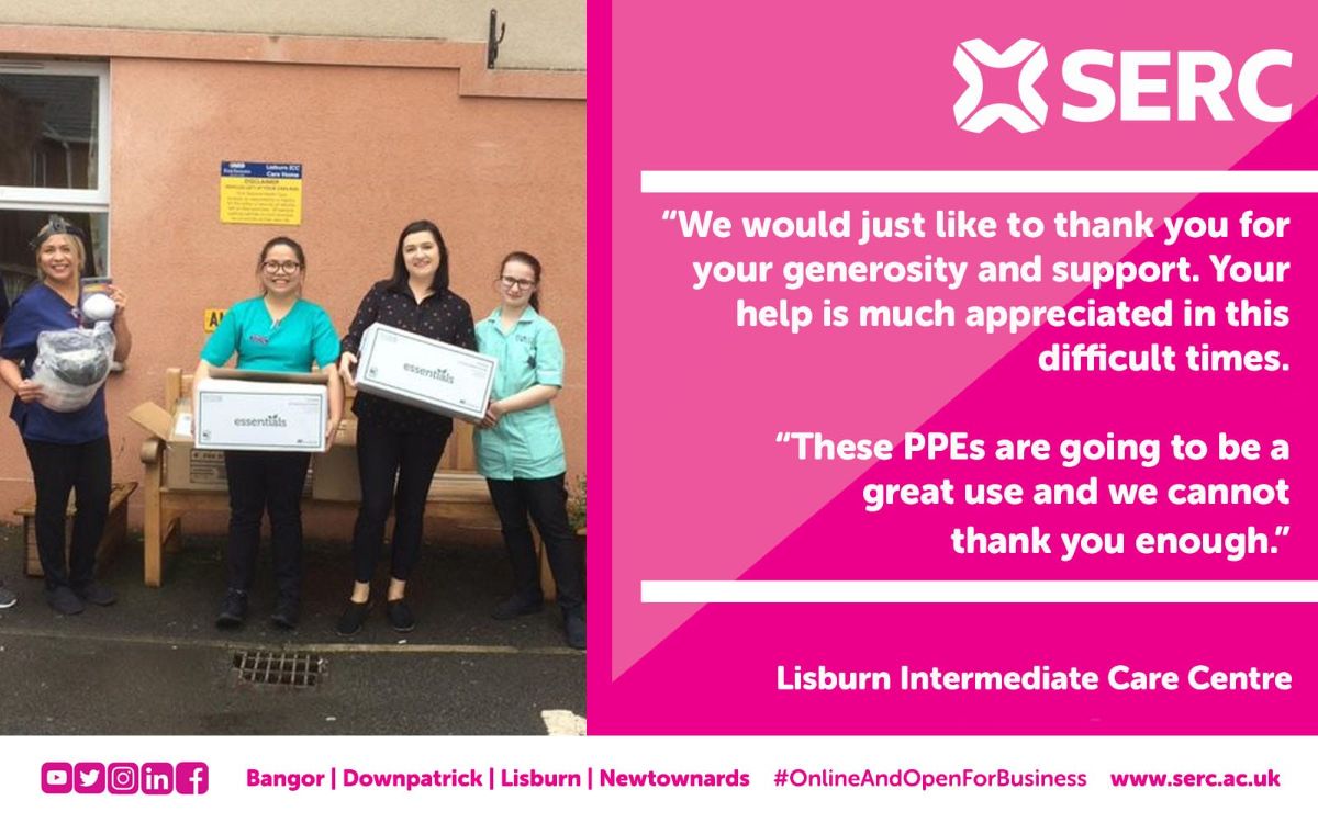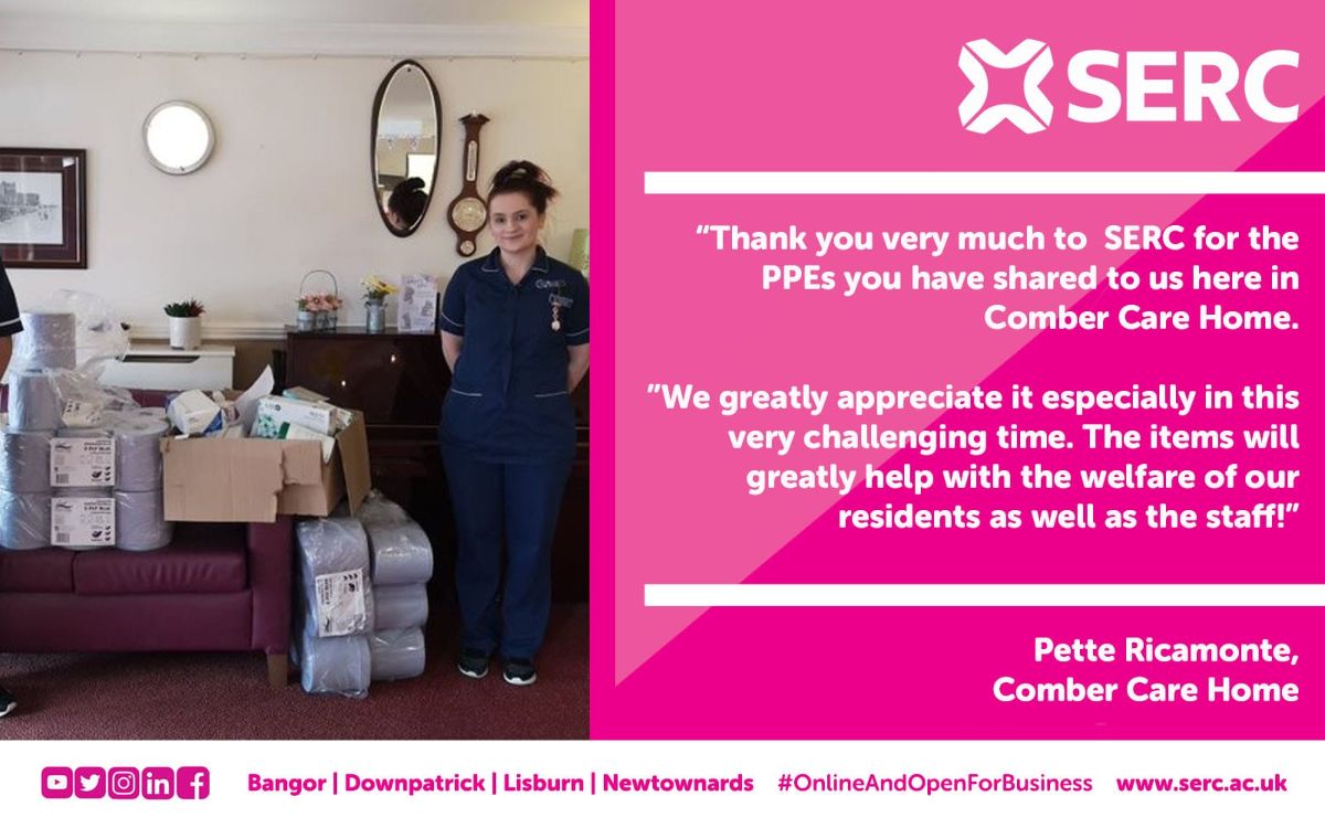 The Enterprise team then got in contact with local care homes, to find out their need for PPE and to see how SERC could help. The team then collected all the PPE from the SERC campuses to create packages to deliver to care homes across the South Eastern region.
