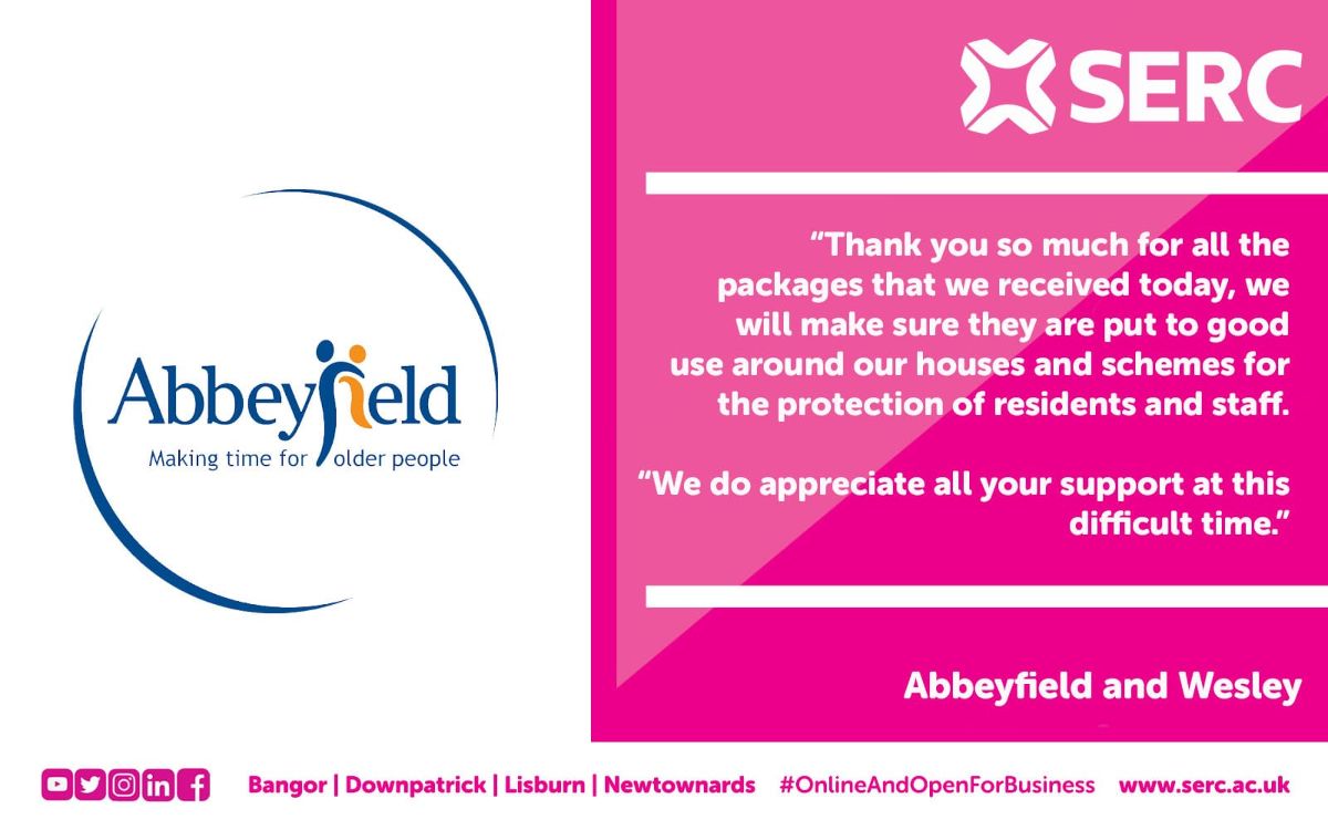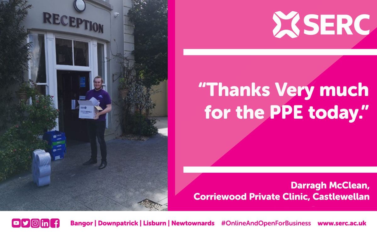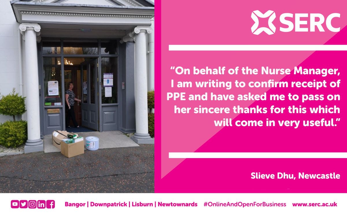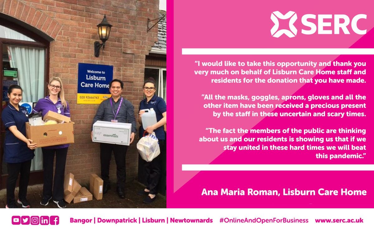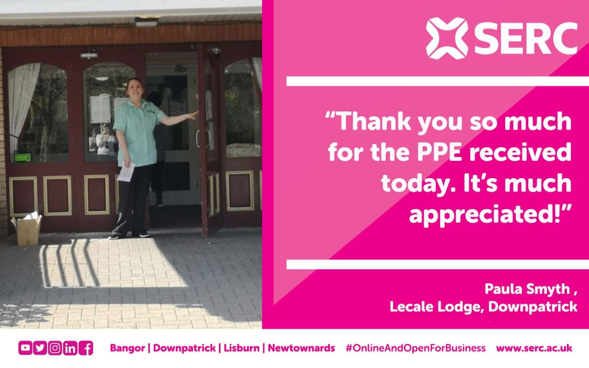 The Enterprise team then got in contact with local care homes, to find out their need for PPE and to see how SERC could help. The team then collected all the PPE from the SERC campuses to create packages to deliver to care homes across the South Eastern region.