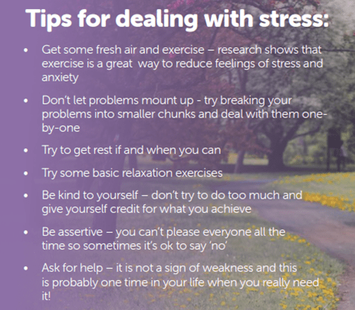 If you're feeling at anytime that you are suffering from stress Try the NHS quiz to Get your Mind Plan for personalised support click here