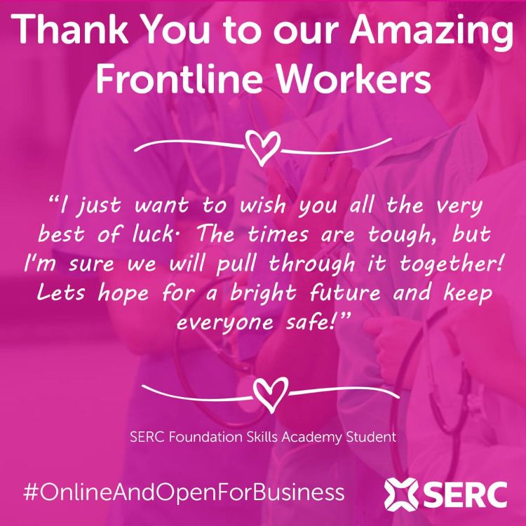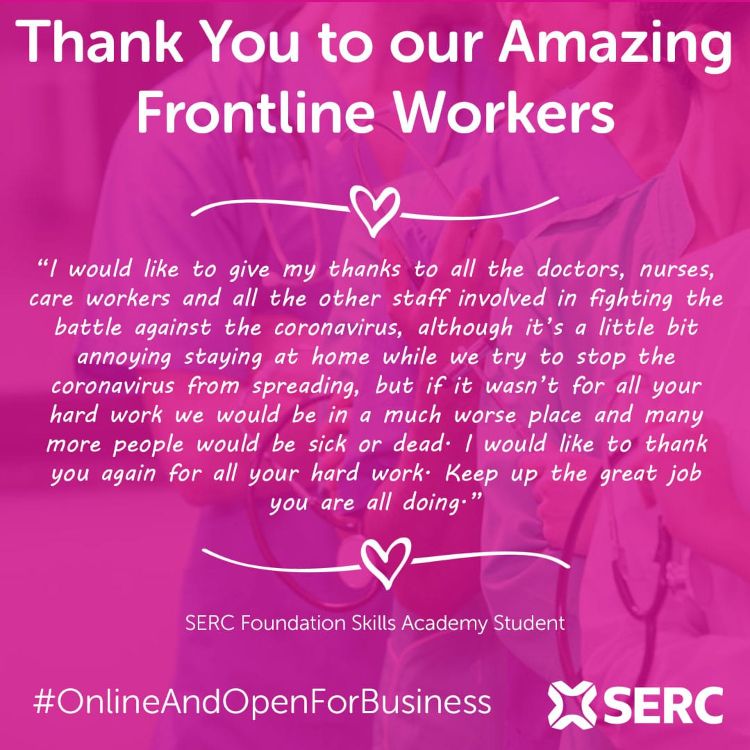 Foundation Skills Academy students from all four of SERC's main campuses, Downpatrick, Bangor, Lisburn and Newtownards wanted to express their gratitude and admiration for the frontline workers that are helping to fight Covid-19.