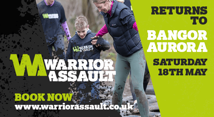 Warrior Assault returns to Bangor Aurora on Saturday 18th May. Tackle your way over, under & through 30+ fun and challenging obstacles, featuring: