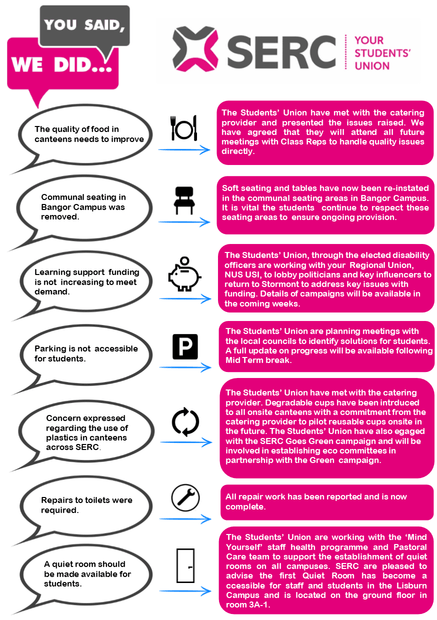 "You said, We did" outlines the fantastic work that the Students' Union have already addressed and implemented.