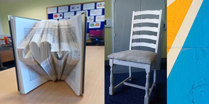 We produce a diverse range of products that are all upcycled or recycled. These products range from small pieces of furniture like chairs and footstools to highly decorative articles made from recycled books and tins.
