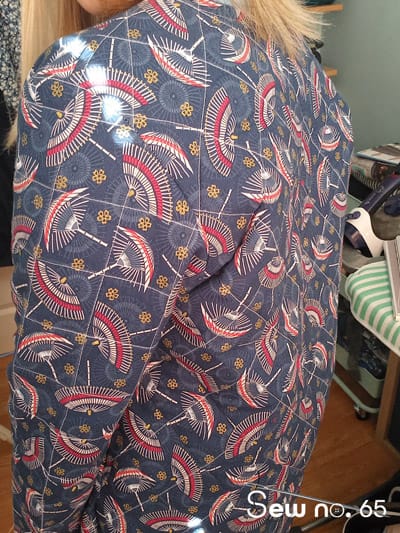 "I decided to use a cotton fabric that I purchased from a destash a while back. I also used a red viscose lining which I had bought from 1st for Fabrics. I made a size 10 in this fabric but in reflection I think I would go up one size to accommodate thicker jumpers. "
