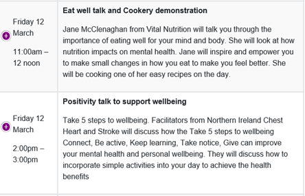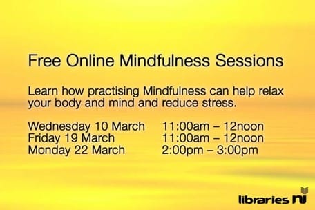 Libraries NI are running free online wellbeing sessions which include Yoga, Mindfulness, Eat Well cookery demonstration and a Positivity talk.