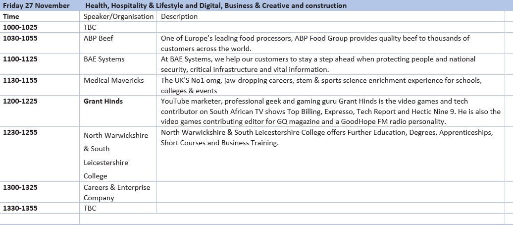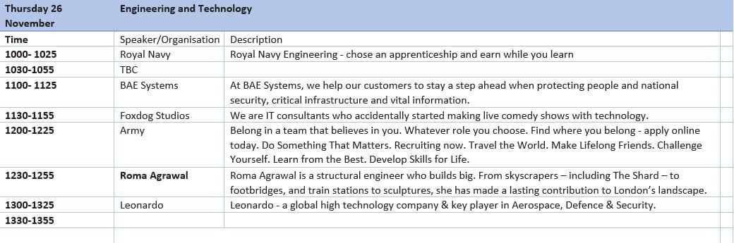 There will be Spotlight Talks on Careers, Apprenticeships and Excellence in partnership with BAE Systems which will bring together the UK’s leading employers and apprentices to inspire even more young people, from all walks of life, to take up technical career routes and apprenticeships (see following table of speakers).